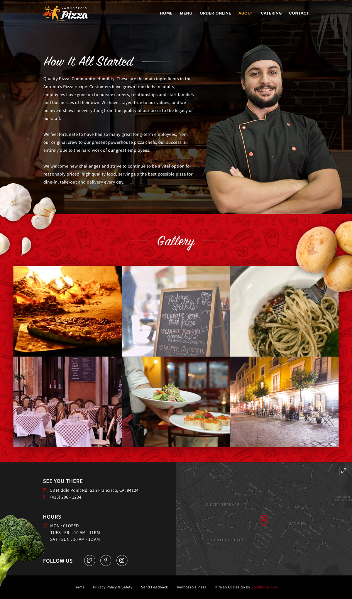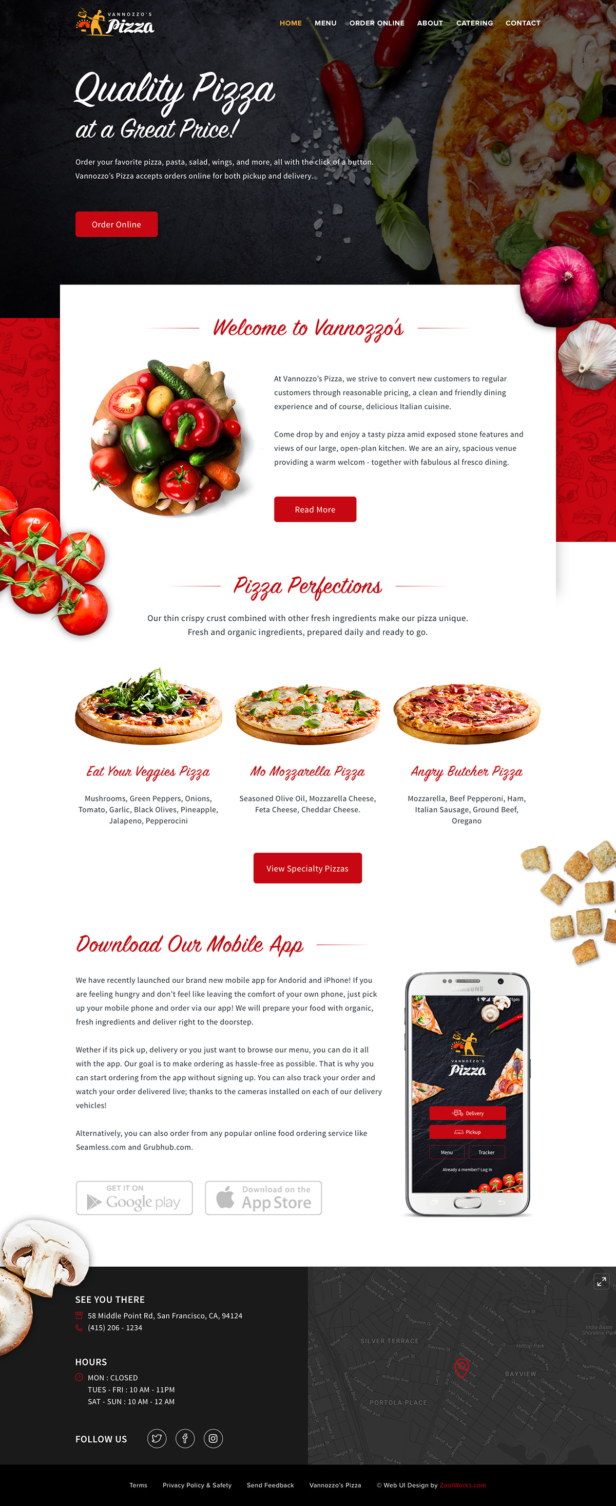 This is a responsive website designed for a pizza restaurant, enabling users to browse the menu, view specials, and place online orders with ease.